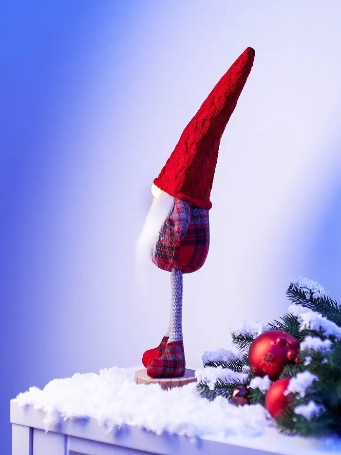 Фигура текстиль «Гном в красном» 55 см, 1 LED, от батареек AG13×3, свечение тёплое белое