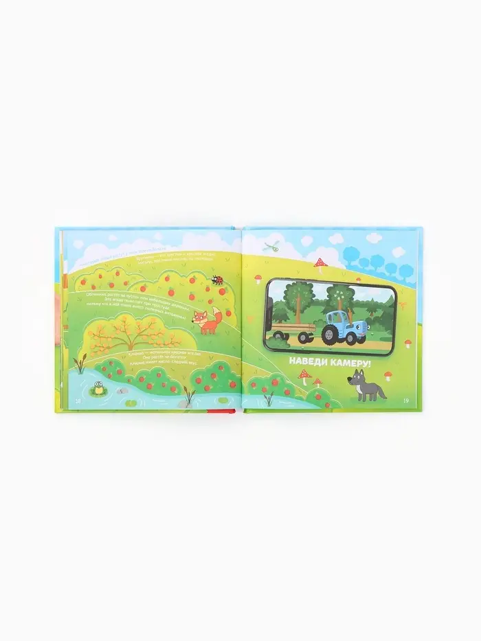 «Синий трактор» с дополненной реальностью — это энциклопедия, в которой картинки оживают. Достаточно навести планшет или смартфон — и трактор поедет, заговорит, покажет, как работает стройка, ферма или аэропорт. Это не просто книга — это живой разговор о мире вокруг.