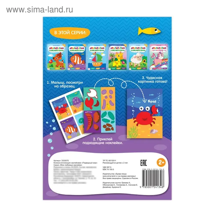 Аппликации наклейками «Подводный мир», 12 стр.