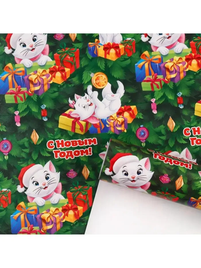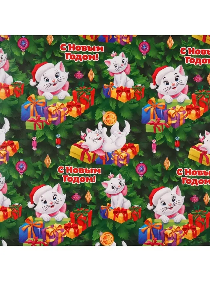 Упаковочная бумага новогодняя, 70 х 100 см, Коты аристократы