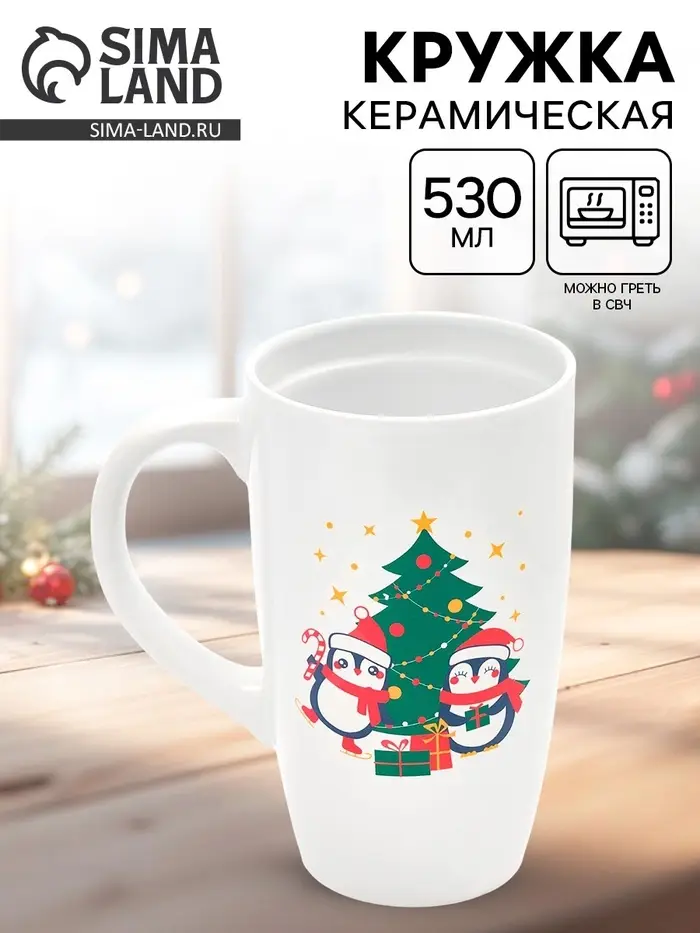 Кружка чайная новогодняя «Пингвины», 530 мл