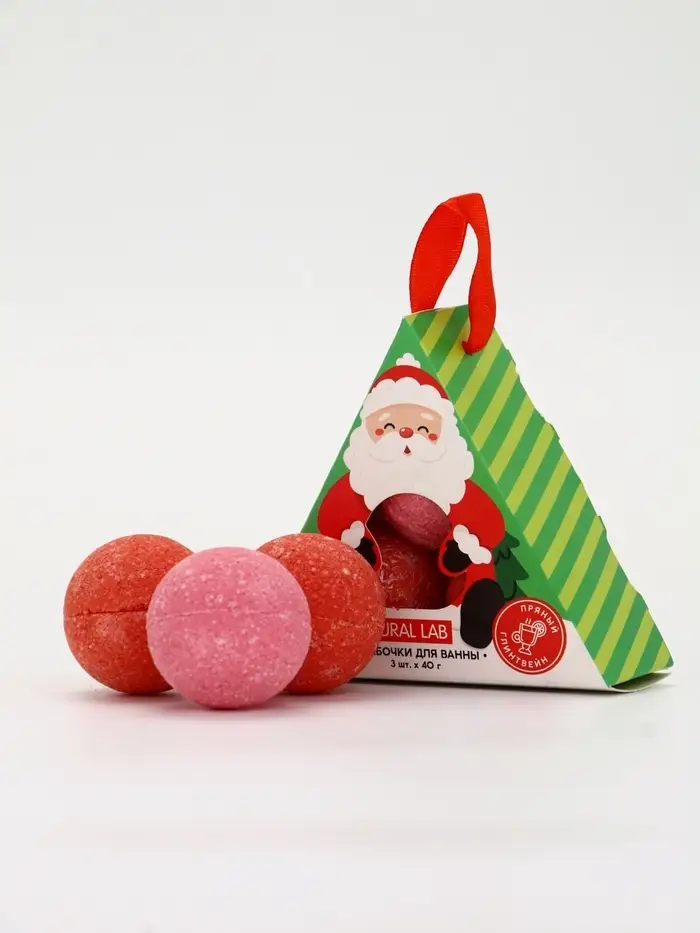 Бомбочки для ванны «Санта», набор 3 шт х 40 г, пряный глинтвейн, URAL LAB