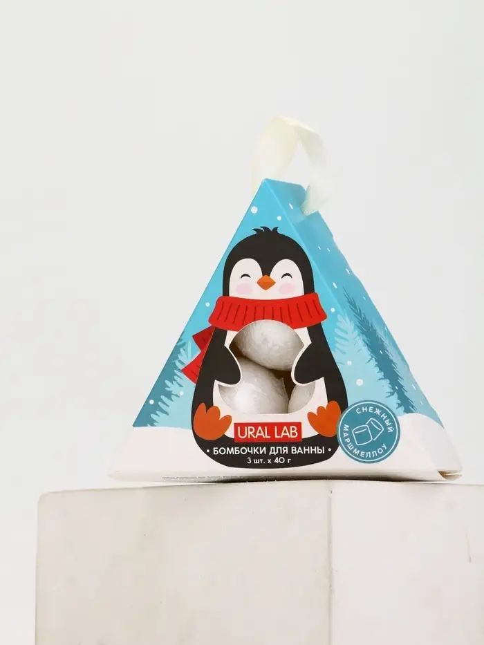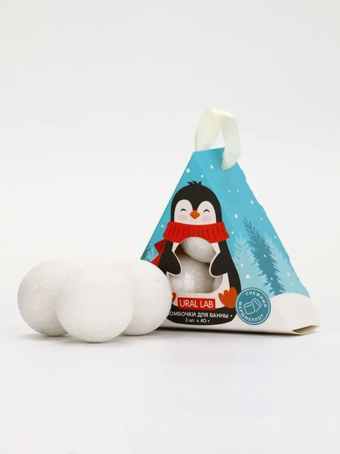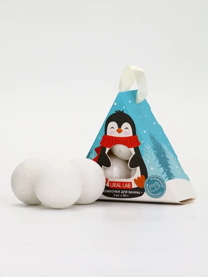 Бомбочки для ванны «Пингвин», 3 шт х 40 г, снежный маршмеллоу, URAL LAB