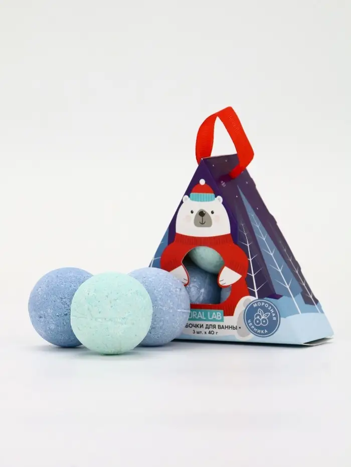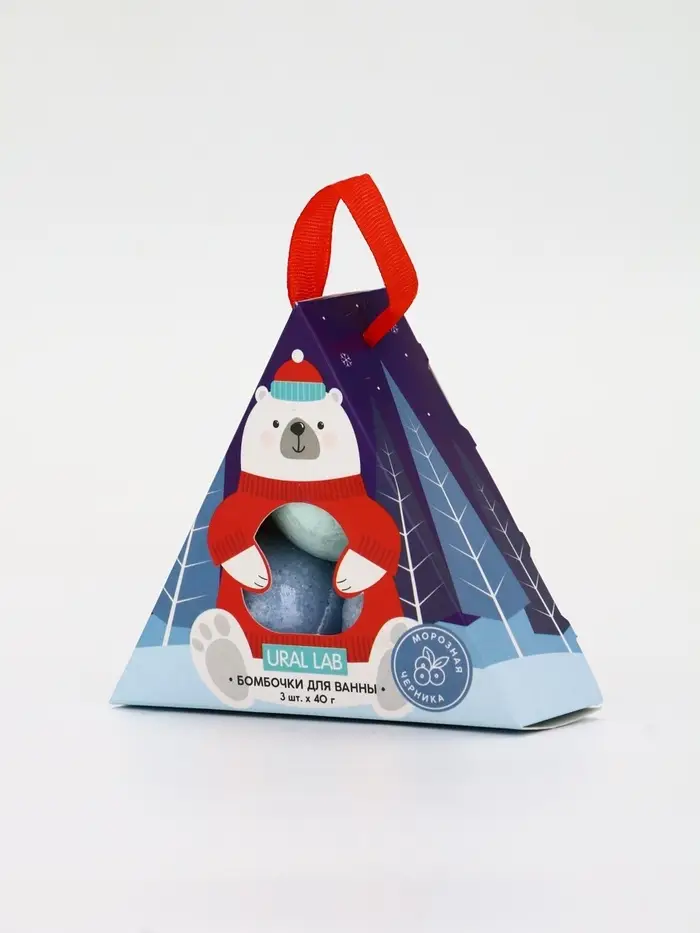 Бомбочки для ванны «Мишка», 3 шт х 40 г, морозная черника, URAL LAB