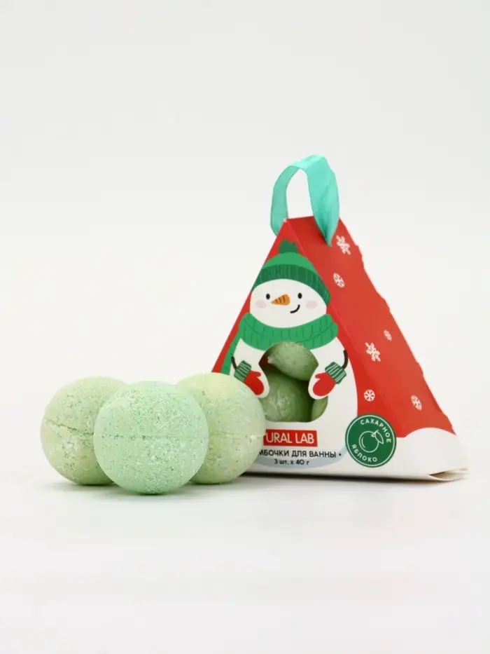 Бомбочки для ванны «Снеговик», 3 шт х 40 г, сахарное яблоко, URAL LAB