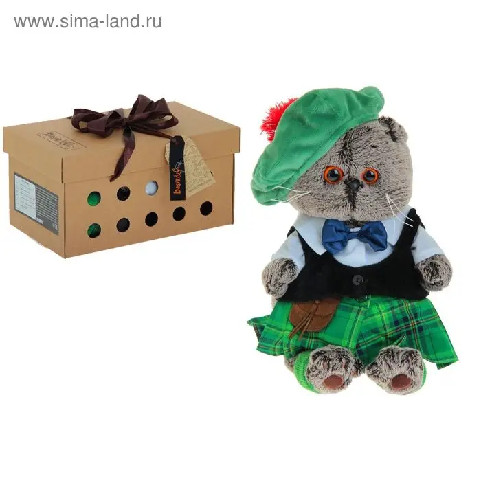 Встречайте Басика — плюшевое чудо, вызывающее умиление как у взрослых, так и у детей! Дарить котика — целое удовольствие! Упаковка выполнена в виде плотной картонной коробки с отверстиями для воздуха, как будто внутри находится настоящий котёнок. Волнительным моментом станет развязывание красивого атласного банта: и вот он, вислоухий шотландский красавец, — новый член семьи! В коробке также находится паспорт с подробной информацией о питомце. У игрушек «Басик и Ко» разные аксессуары и образы, которые делают подарок индивидуальным. Выберите подходящего!