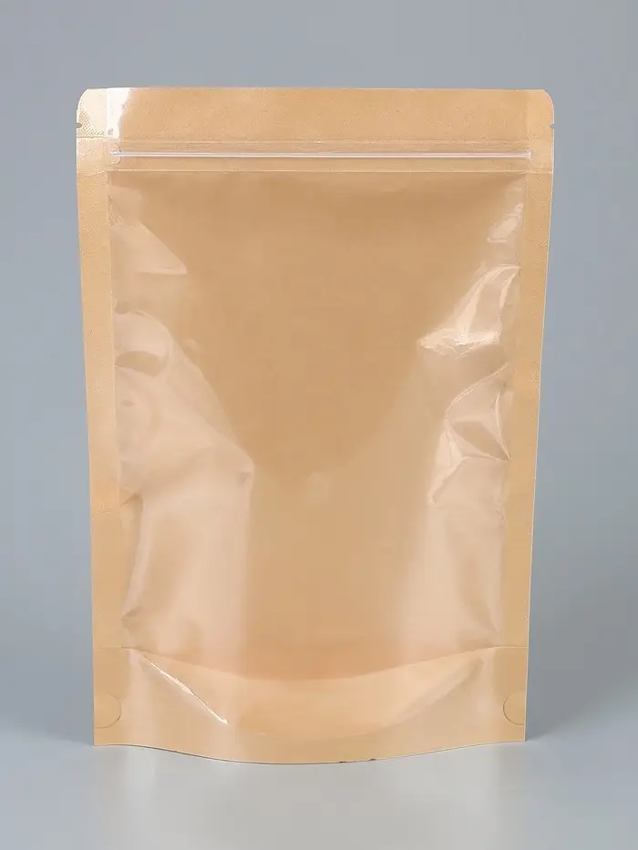 - Комбинированный материал: Задняя стенка из плотной крафт-бумаги придаёт упаковке экологичный, уютный вид. Передняя прозрачная стенка из полиэтилена обеспечивает обзор и защиту. Пакет можно использовать повторно.