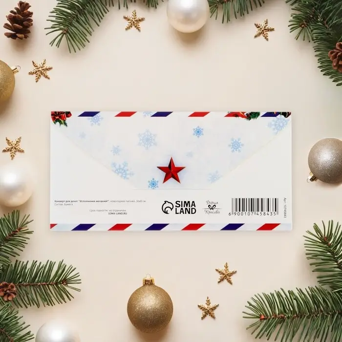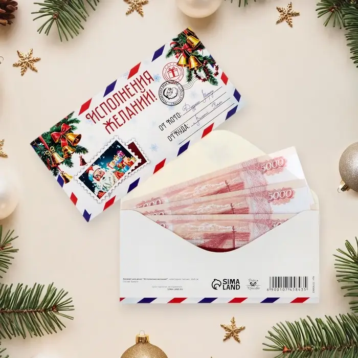 Конверт для денег "Исполнения желаний!" новогоднее письмо 16х8 см
