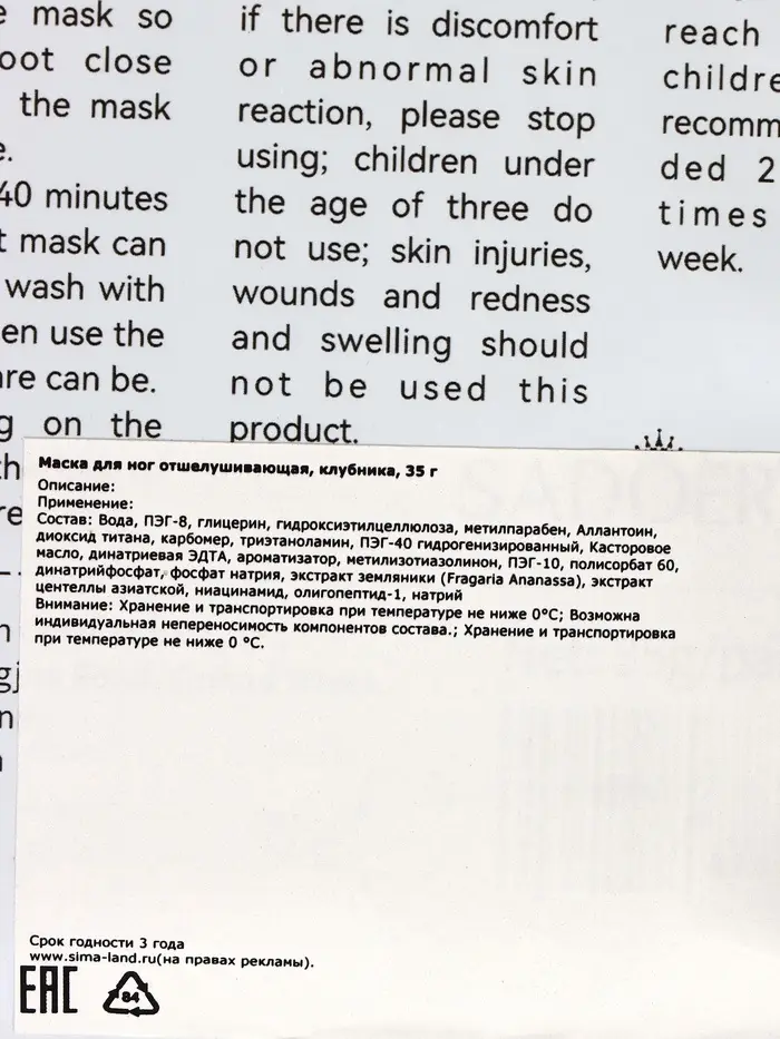 Sadoer отшелушивающая маска-носки для ног с клубникой — это простой и эффективный способ ухода за кожей стоп в домашних условиях. Маска мягко удаляет омертвевшие клетки, смягчает и увлажняет кожу, оставляя её гладкой, мягкой и ухоженной.