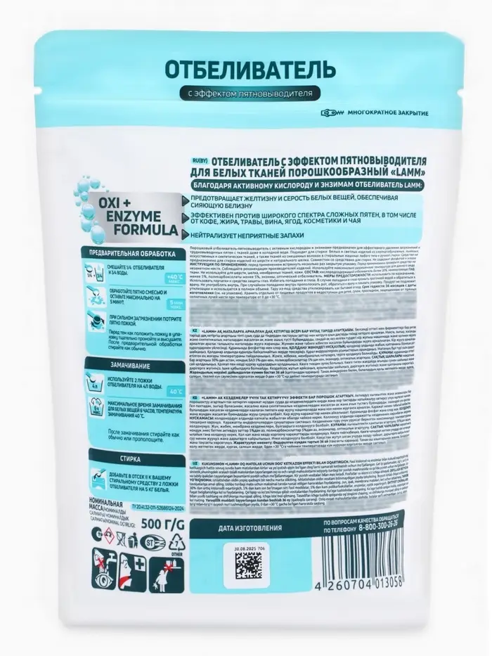 Отбеливатель LAMM для белого, с пятновыводителем, 500 г