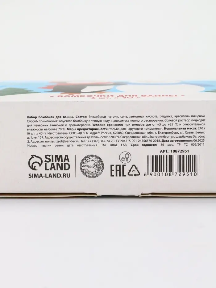 Бомбочки для ванны в домике «Пингвин», набор 6 шт х 40 г, URAL LAB
