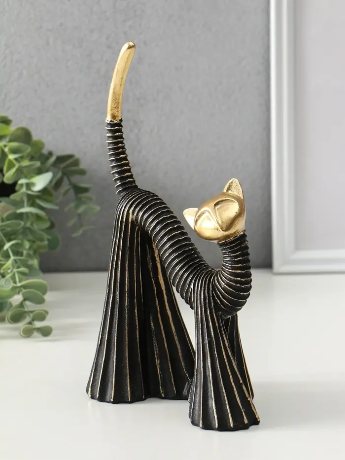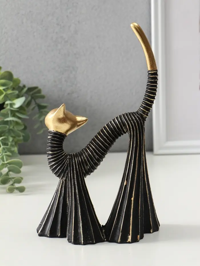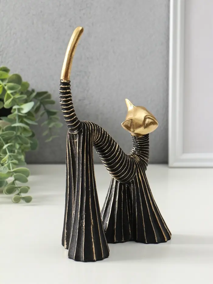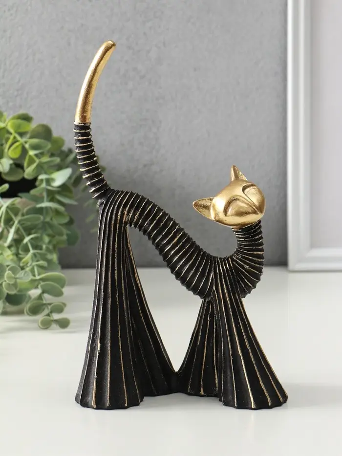 Сувенир полистоун "Кошка в клёшах" чёрно-золотая 7,5х15х25 см