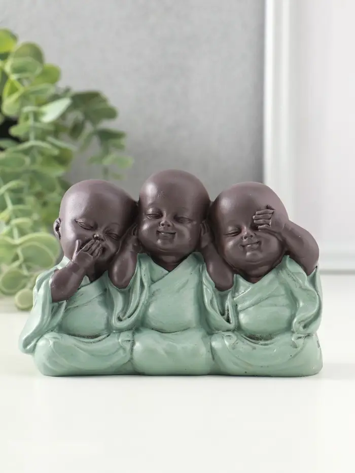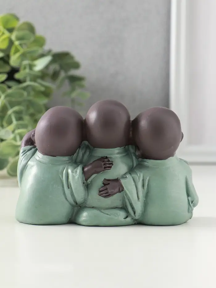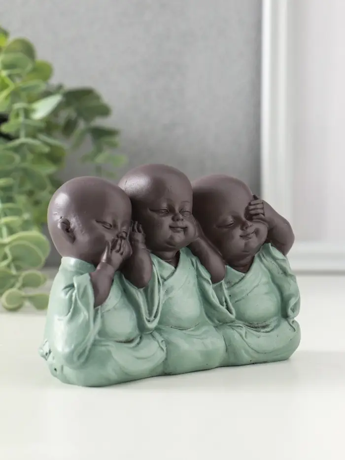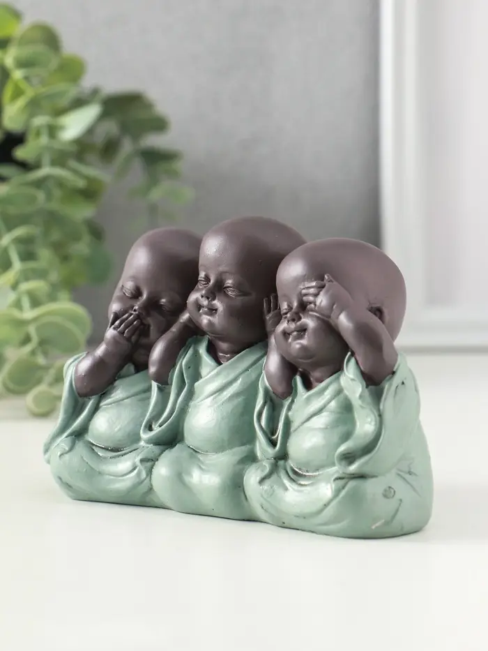 Сувенир полистоун "Маленькие будды - не слышу, не вижу, не скажу" зелёный 4,6х12,5х8 см
