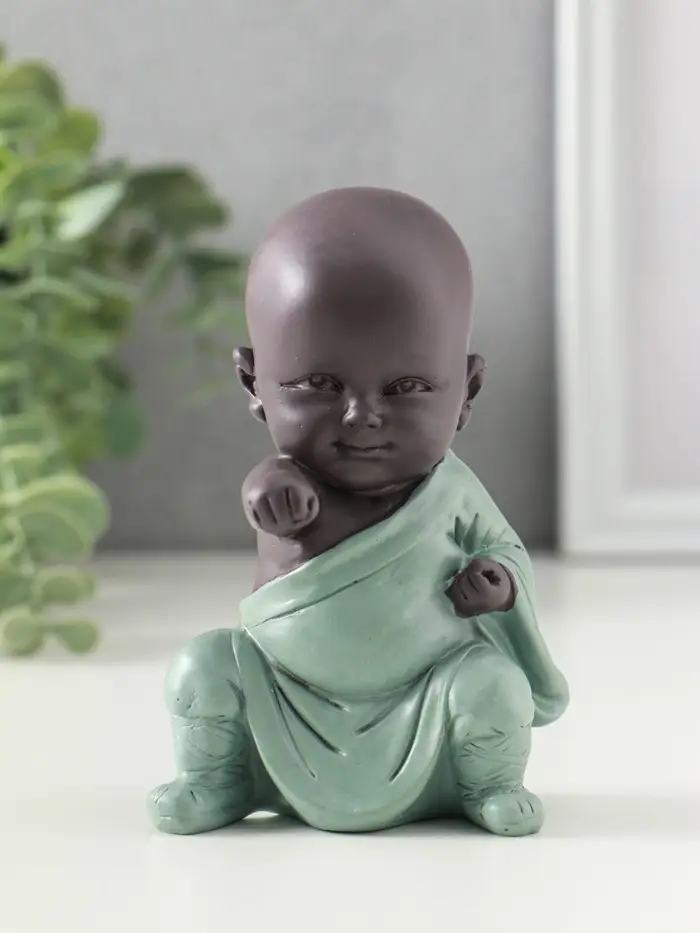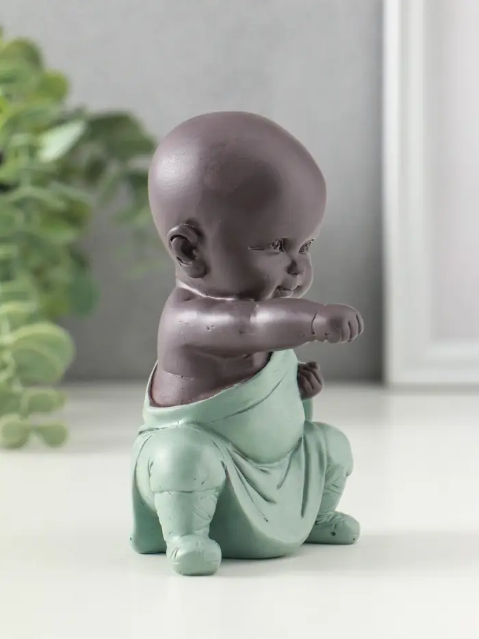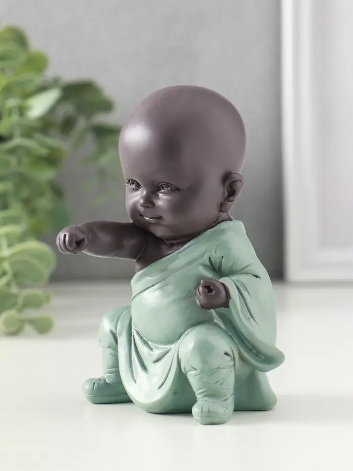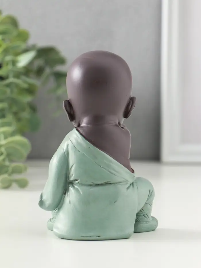 Сувенир полистоун "Маленький будда - кунг-фу" зелёно-коричневый 6,8х7,5х11 см