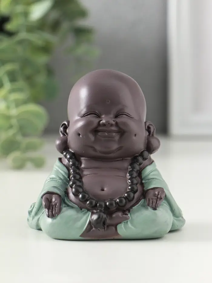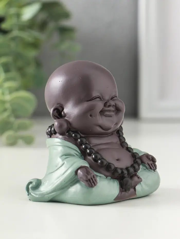 Сувенир полистоун "Маленький будда - Абхайя-мудра" зелёно-коричневый 8х6х6 см