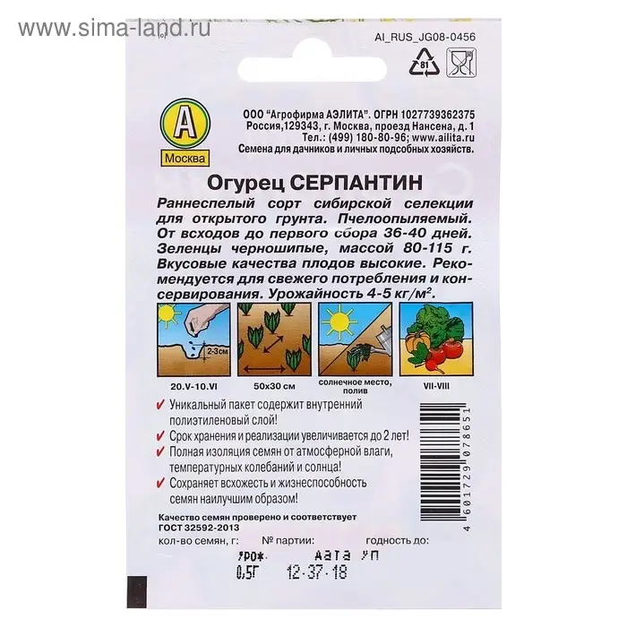 Семена Огурец "Серпантин", "Лидер", пчелоопыляемый, 20 шт.