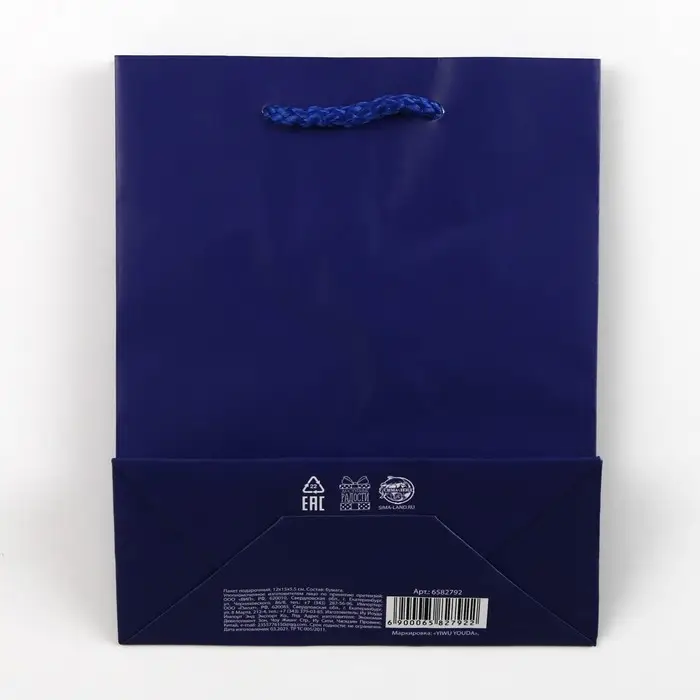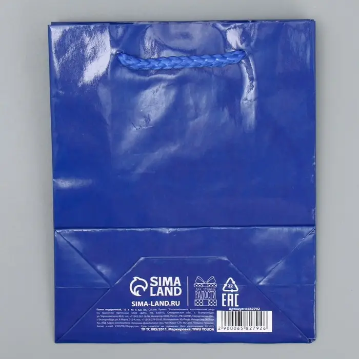 Пакет подарочный ламинированный, упаковка, «Синий», S 12 х 15 х 5,5 см