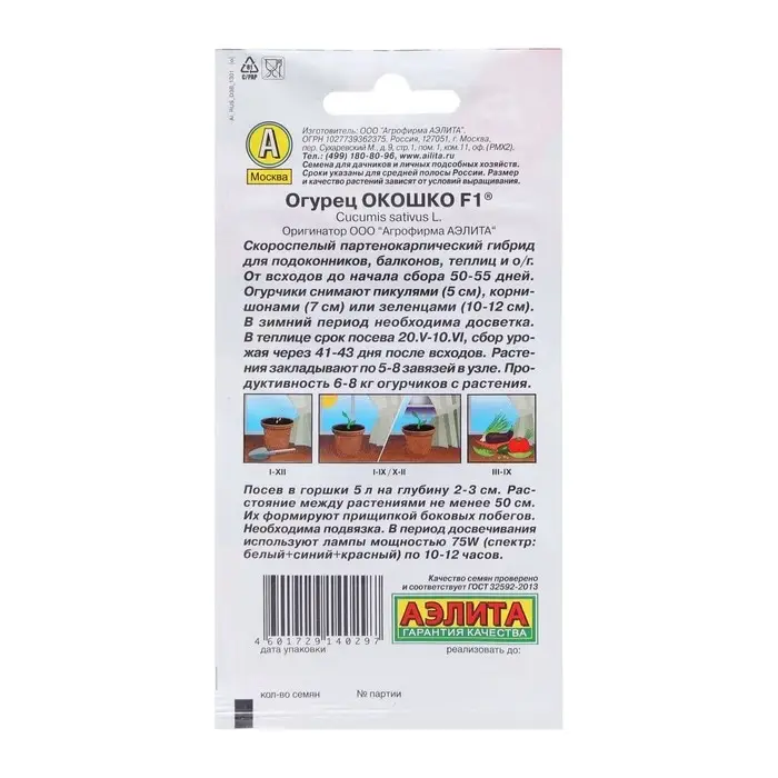 Семена Огурец "Окошко", F1, ц/п, 10 шт