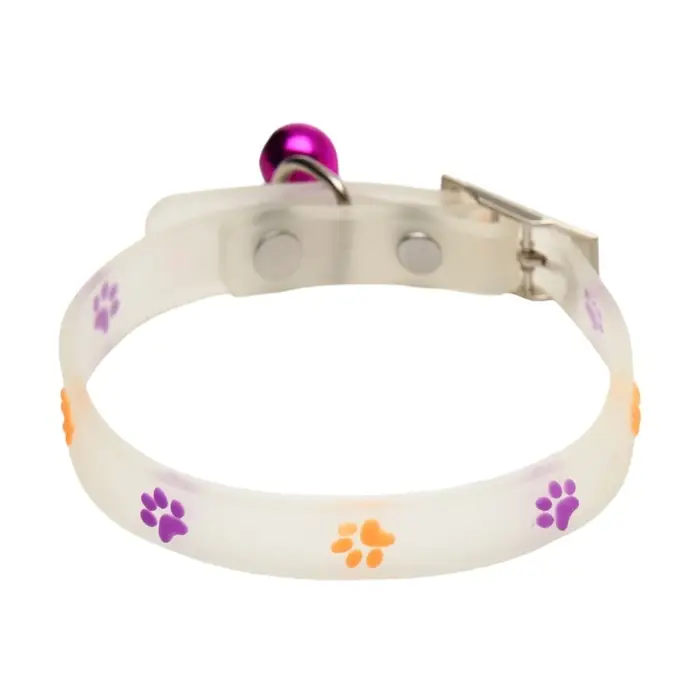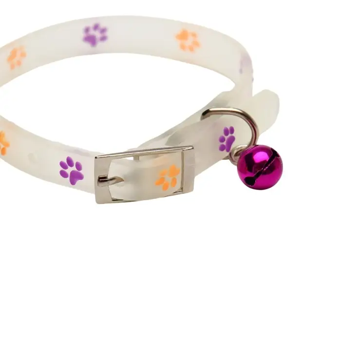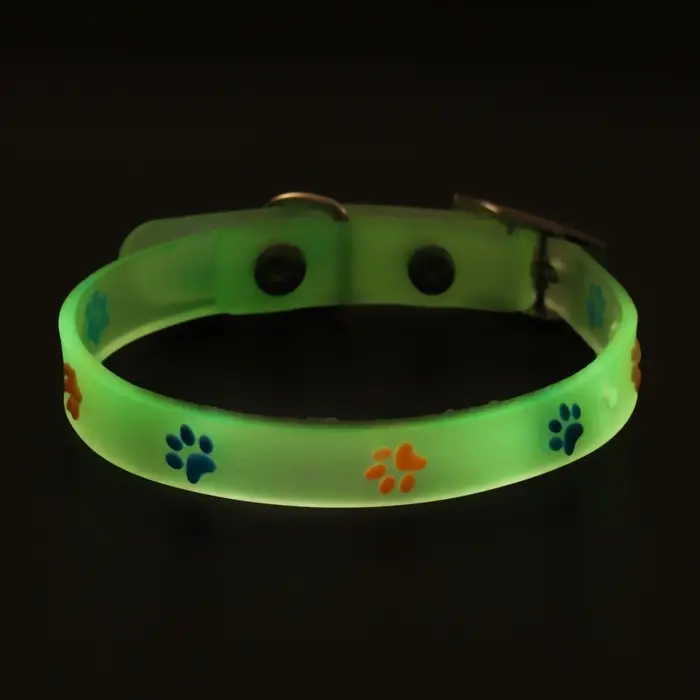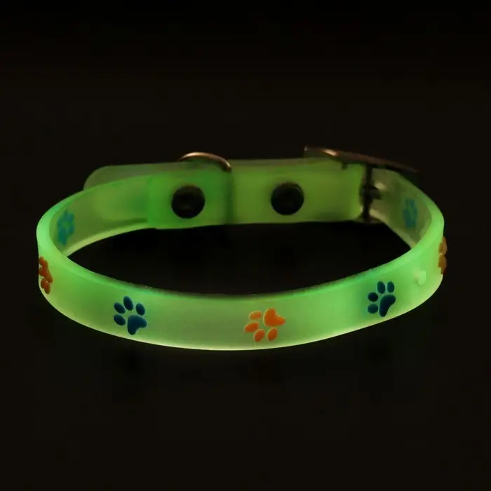 Ошейник для собак и кошек Яркие следы — это идеальный выбор для любителей прогулок в любое время суток. Благодаря люминесцентному покрытию, он светится в темноте, что делает вашего питомца видимым даже в условиях низкой освещенности. Этот ошейник не только стильный аксессуар, но и незаменимый элемент безопасности.