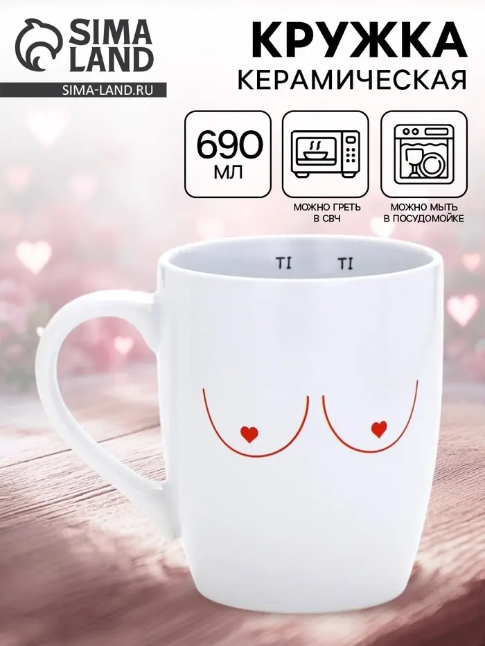 Кружка «Бюст» — это провокация с изюминкой и чувством меры. Белая керамика, лаконичный силуэт и игривая деталь внутри — надпись ”TI TI”, появляющаяся только в нужный момент, как шутка, рассказанная шёпотом. Это не откровение, а *намёк*, адресованный тем, кто ценит остроумие, знает цену двойным смыслам — и умеет улыбнуться, не теряя вкуса.