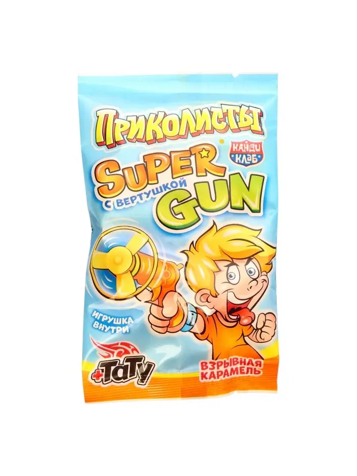 Взрывная карамель с игрушкой и татуировкой "Приколисты. Super Gun с вертушкой" 1г*30шт*12блоков 1086