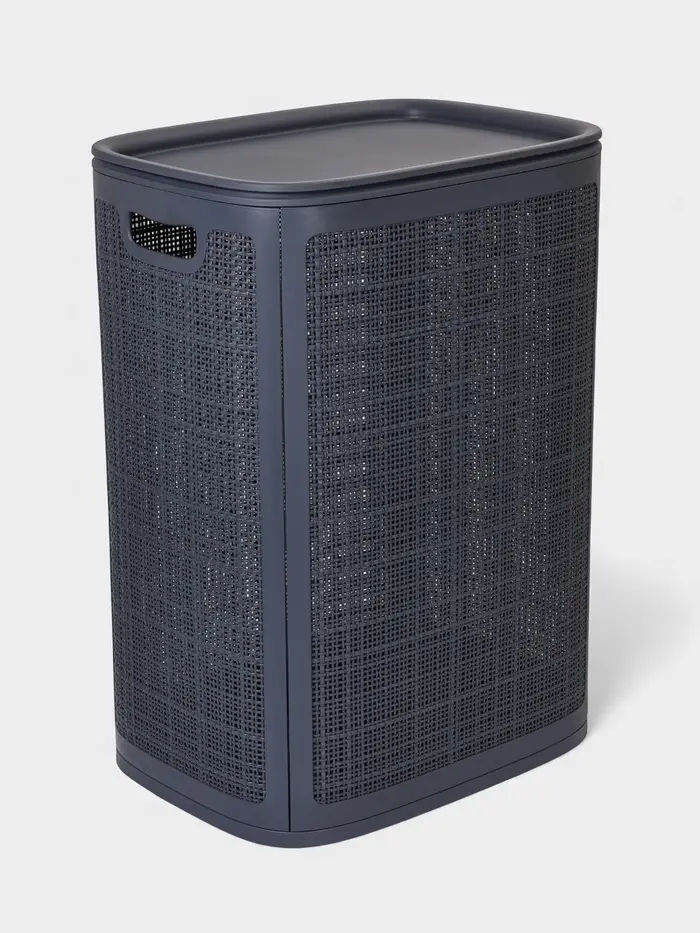 Плетёная корзина для белья с крышкой "Лён" 75л 43×32×60см, цвет графит