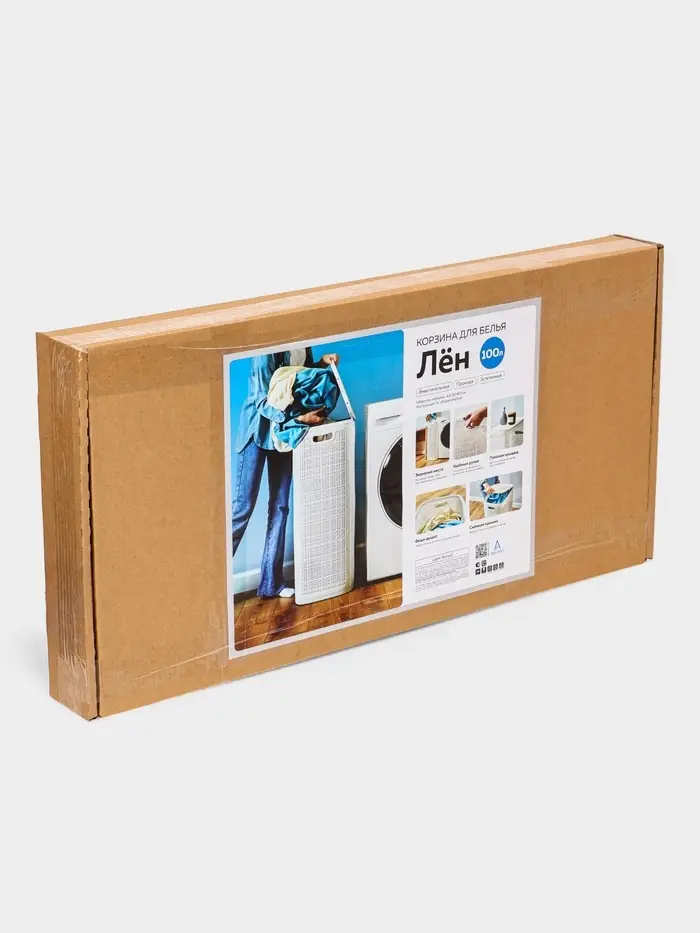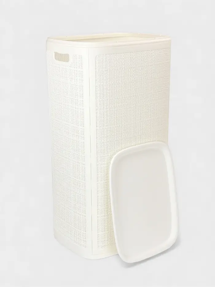 Плетёная корзина для белья с крышкой "Лён" 100л 43×32×80см, цвет белый