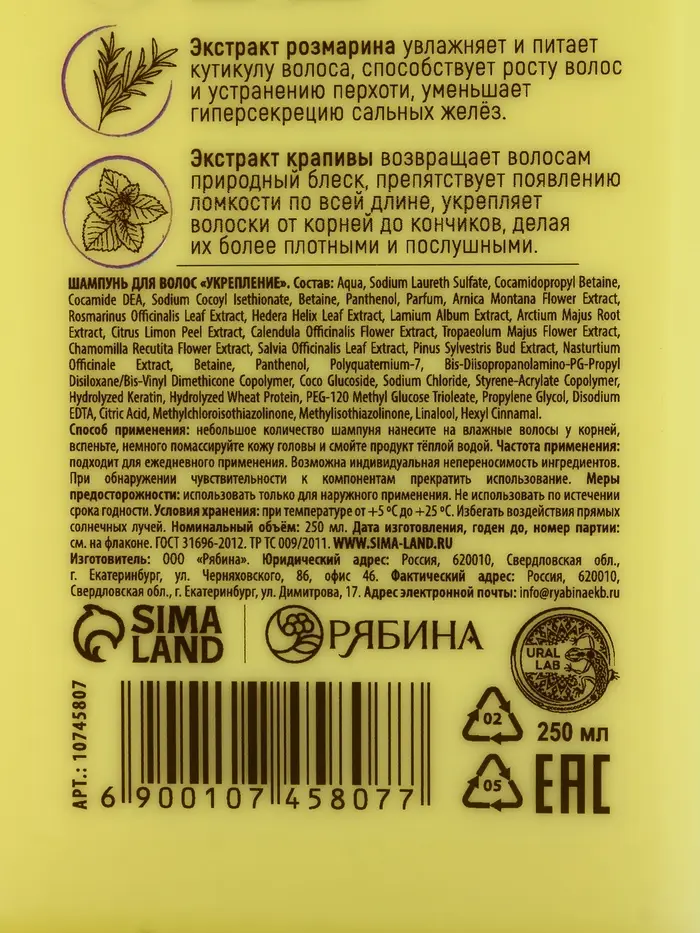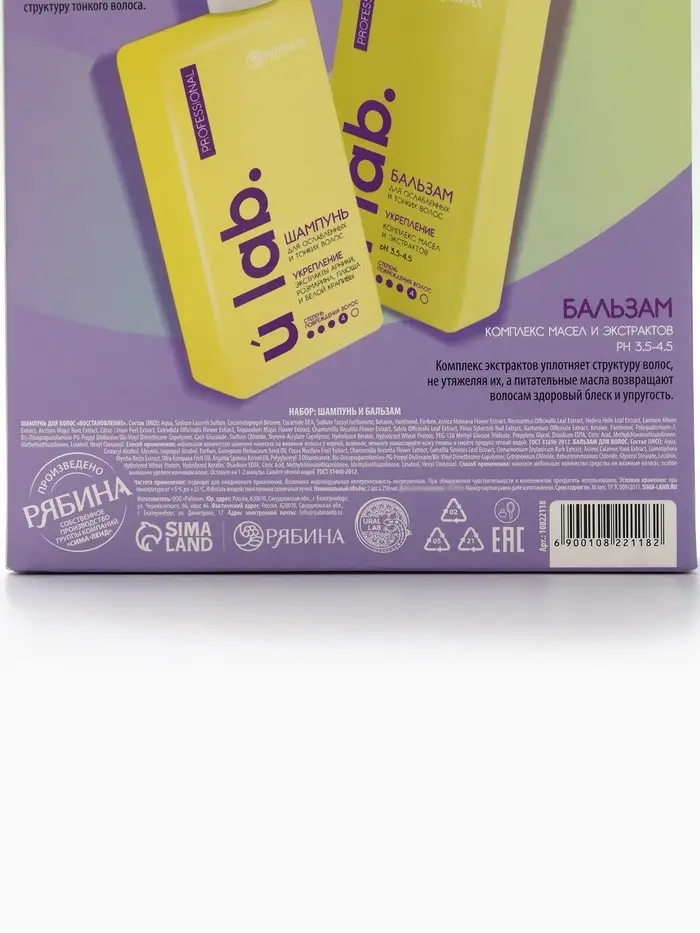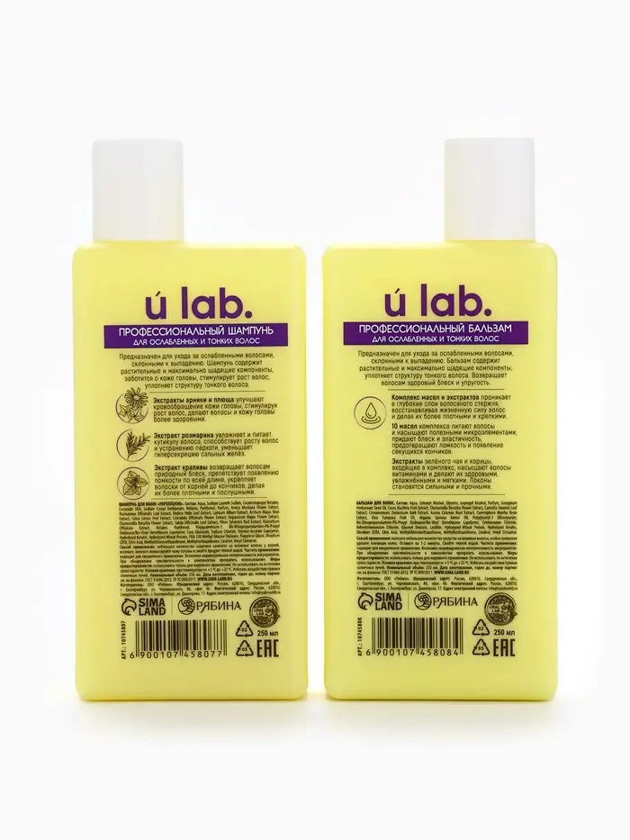 Подарочный набор «Укрепление»: шампунь 250 мл, бальзам 250 мл, URAL LAB