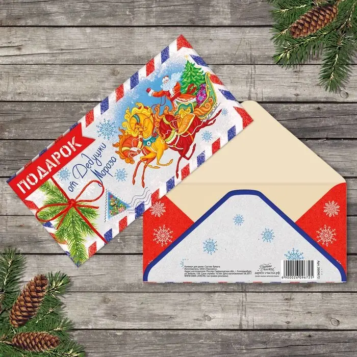 Конверт для денег «Новогодняя почта», письмо от деда мороза, 16.5 х 8 см