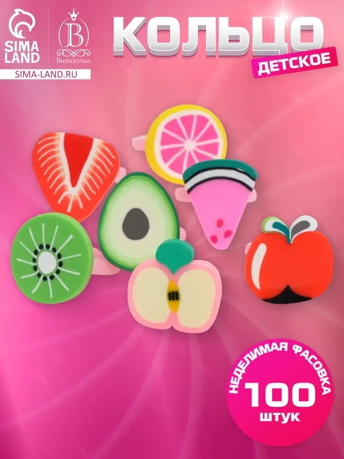 Кольцо «Выбражулька» фруктовое ассорти, форма МИКС, цветное, безразмерное