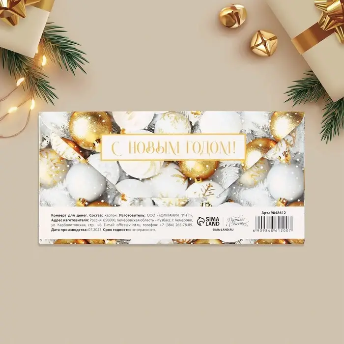 Конверт для денег «С Новым годом!», ёлочные игрушки, 16.5 х 8 см