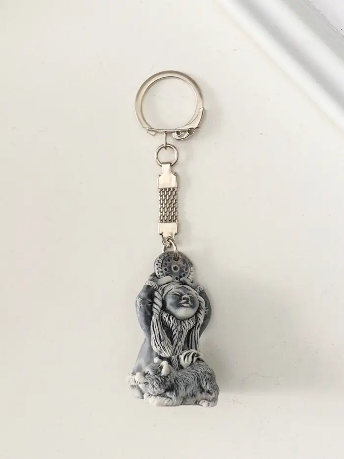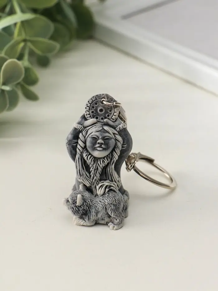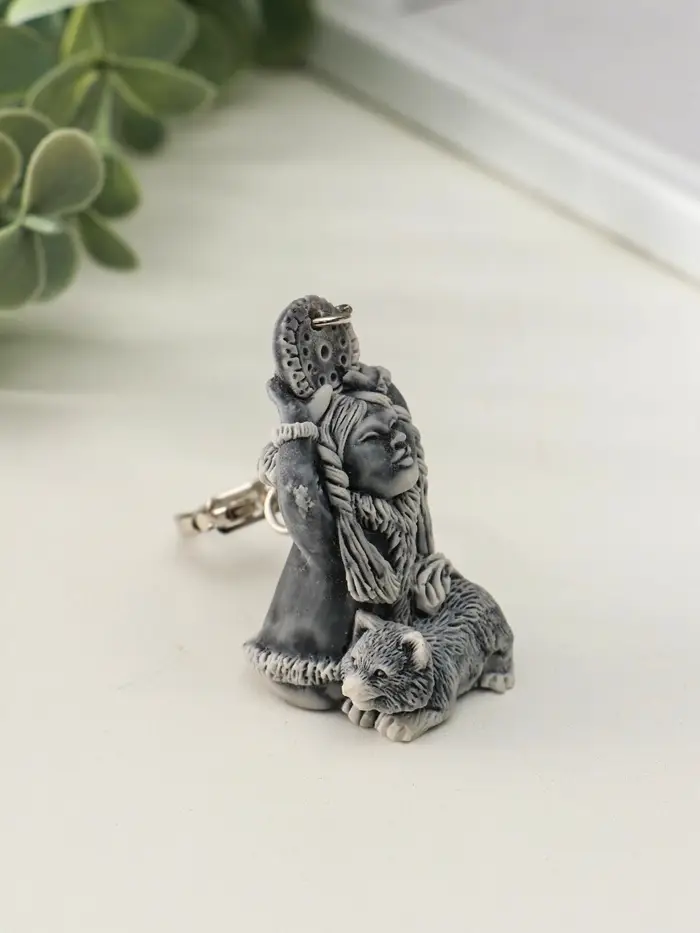 Брелок "Девочка со щенком и бубном маленькая" 4,8 см