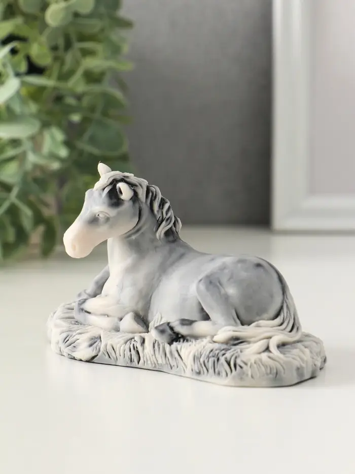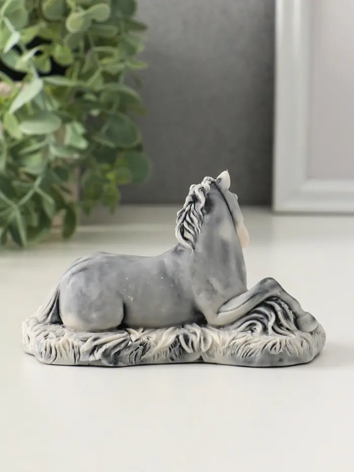 Эта лежащая лошадь из мраморной крошки приносит в дом умиротворение и природную гармонию. Её компактный размер делает фигурку универсальным элементом декора для полки, рабочего стола или праздничного стола.