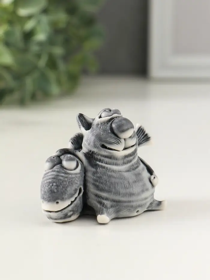 Сувенир "Кот с большой рыбиной" 4,8 см