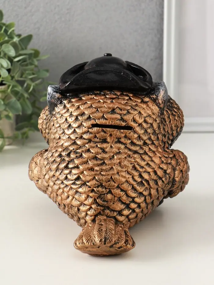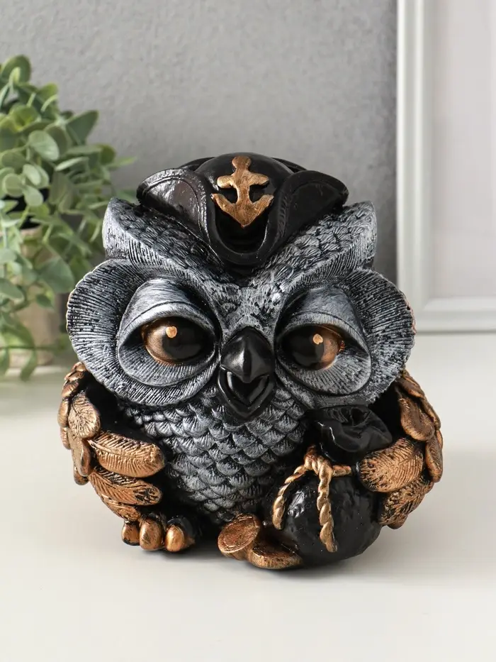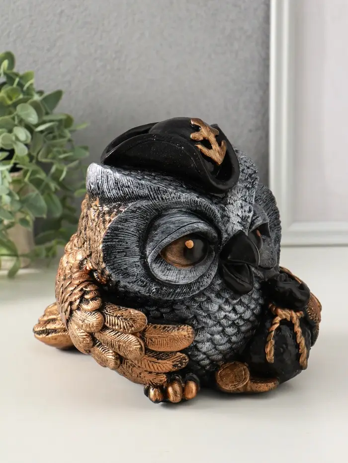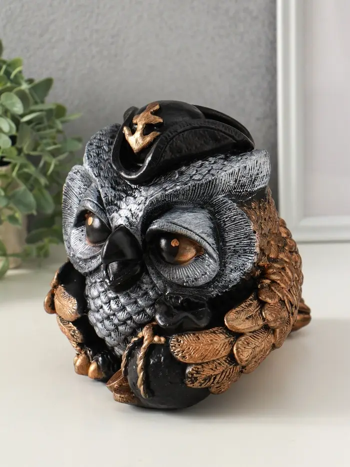Копилка "Сова в треуголке" 18х17 см, бронза с серебром