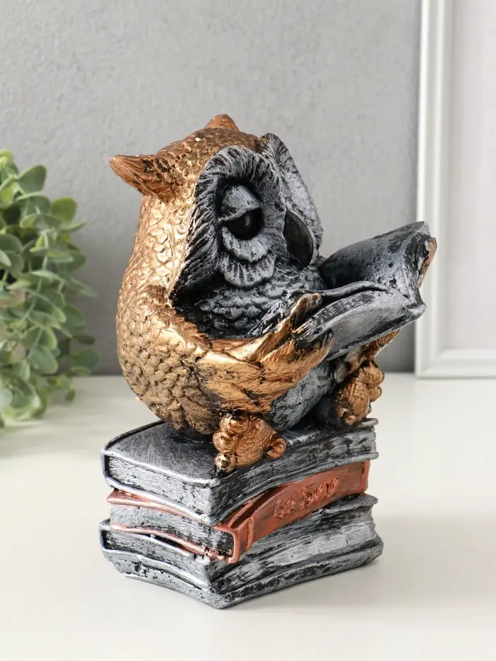 Копилка "Сова с книгой" 25х18 см, бронза с серебром