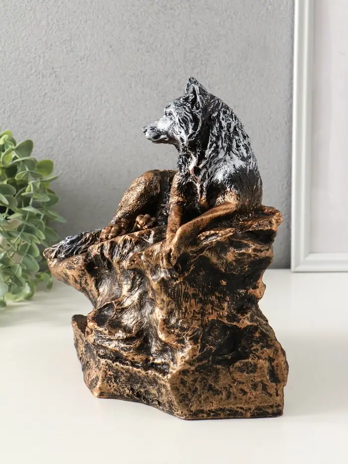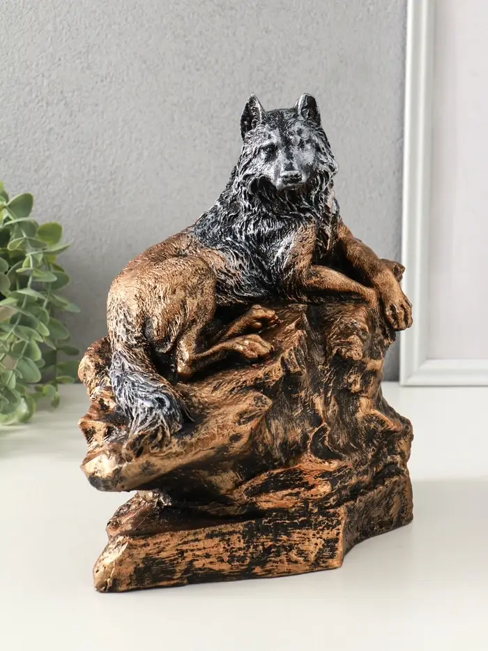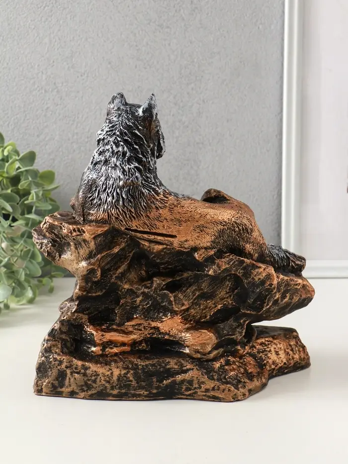 Копилка "Волк на скале" 16х28х27 см, бронза с серебром