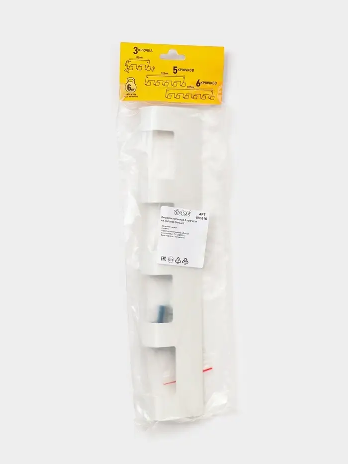 Вешалка настенная 5 крючков, цвет белый