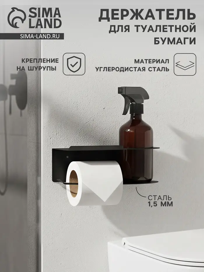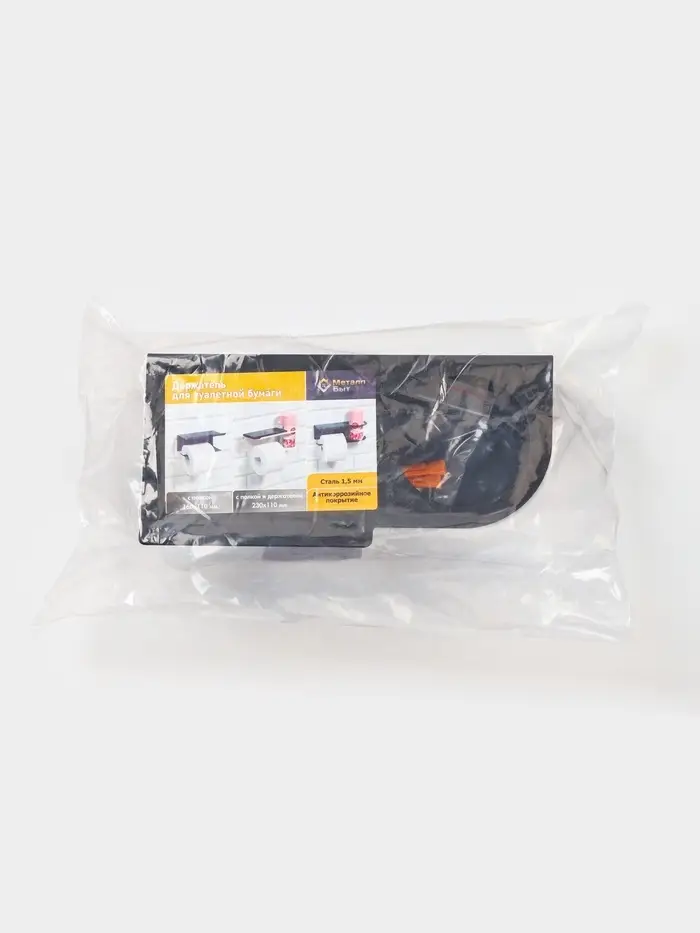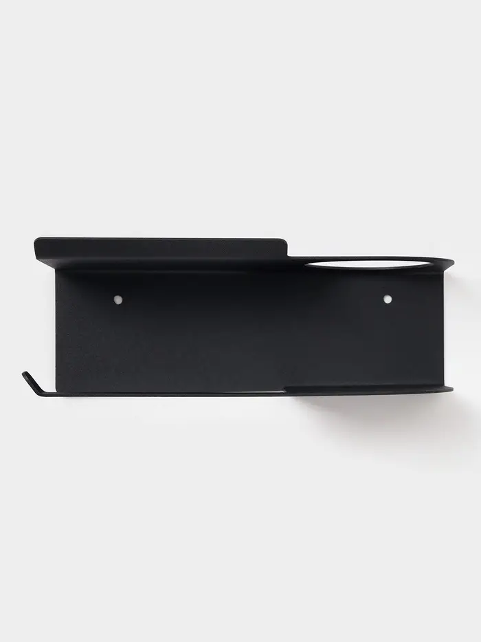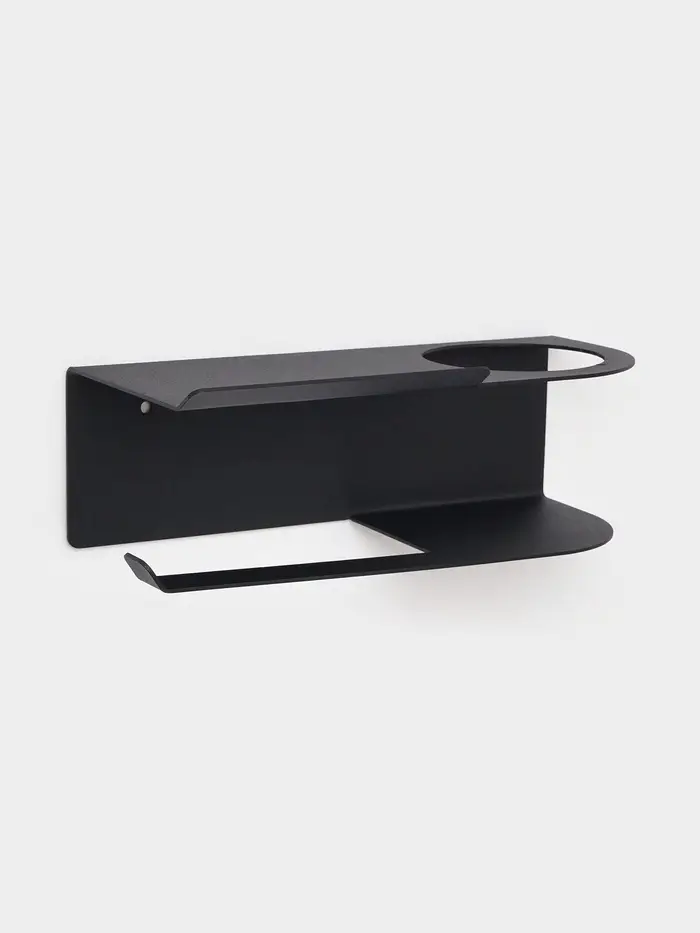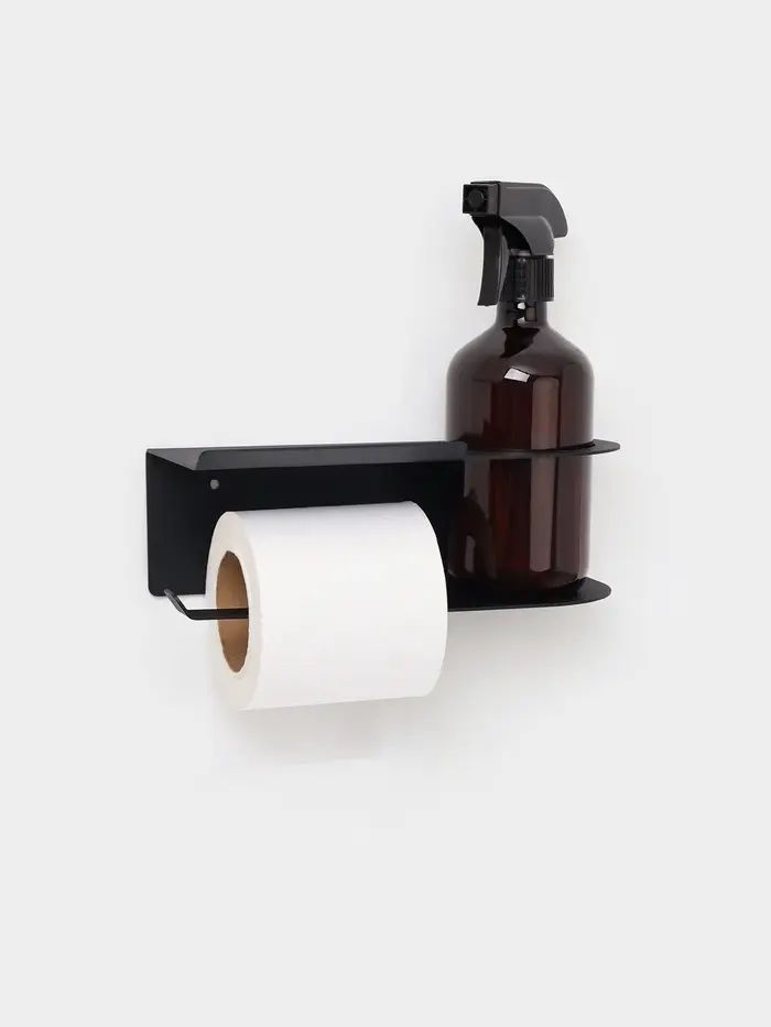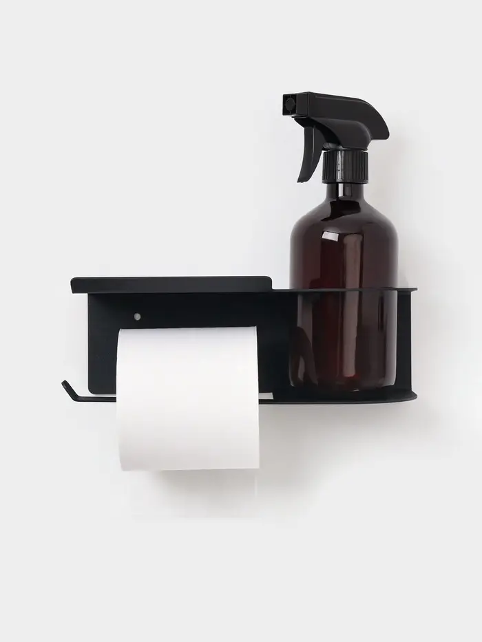 Чёрный держатель для туалетной бумаги с полочкой и отверстием под освежитель — лаконичное и функциональное решение для современного санузла. Он объединяет хранение рулона, мелочей и ароматизатора в одном компактном элементе, не нарушая чистоты линий интерьера. Глубокий чёрный оттенок придаёт изделию сдержанную выразительность и легко сочетается с тёмной сантехникой, металлической фурнитурой или контрастными акцентами.