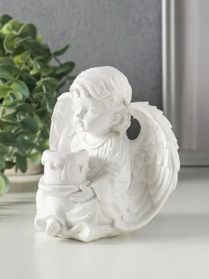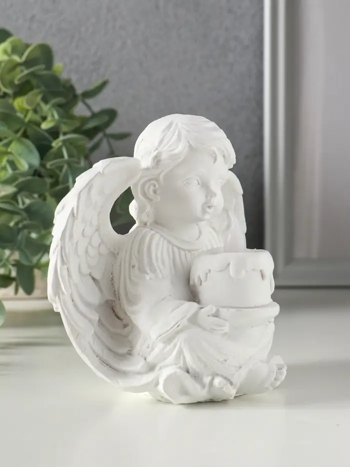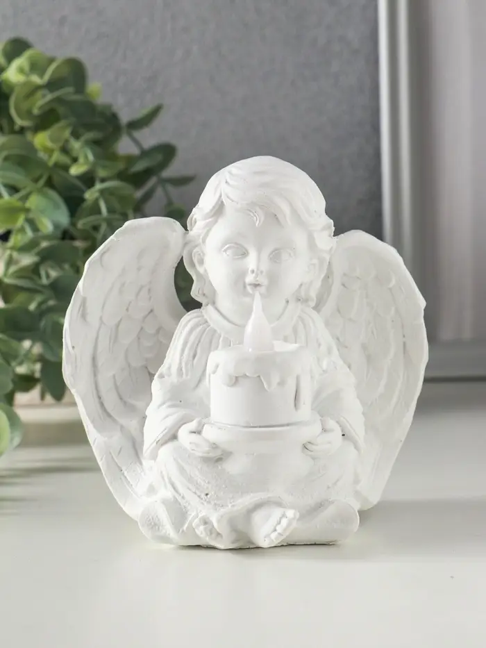 Сувенир полистоун свет "Белоснежный ангел с тортом" 11,8х8х11,5 см