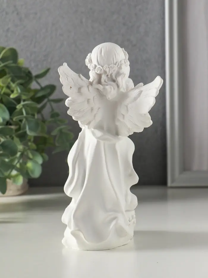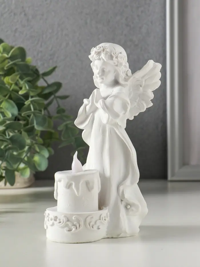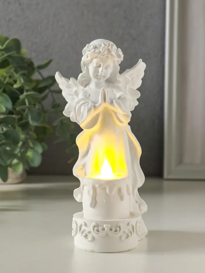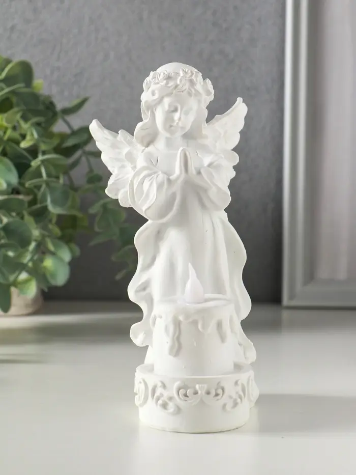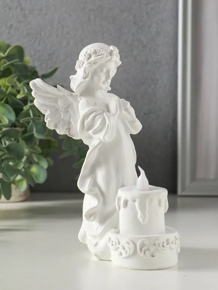 Сувенир полистоун свет "Белоснежная девушка-ангел с тортом" 7,6х8,5х16,3 см