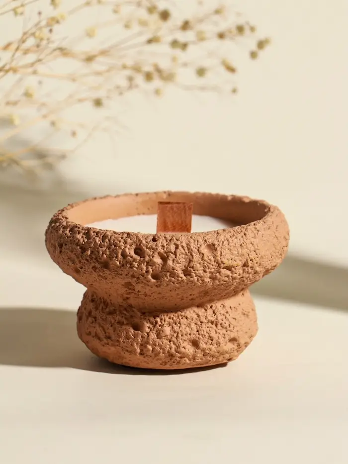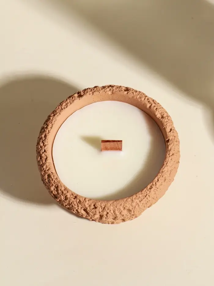 Свеча в вулканическом подсвечнике "Чаша" деревянный фитиль, персиковая 9,3х9,3х5,5 см