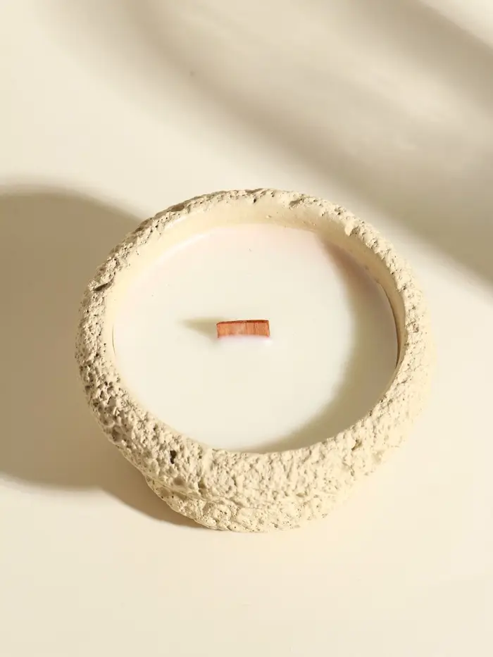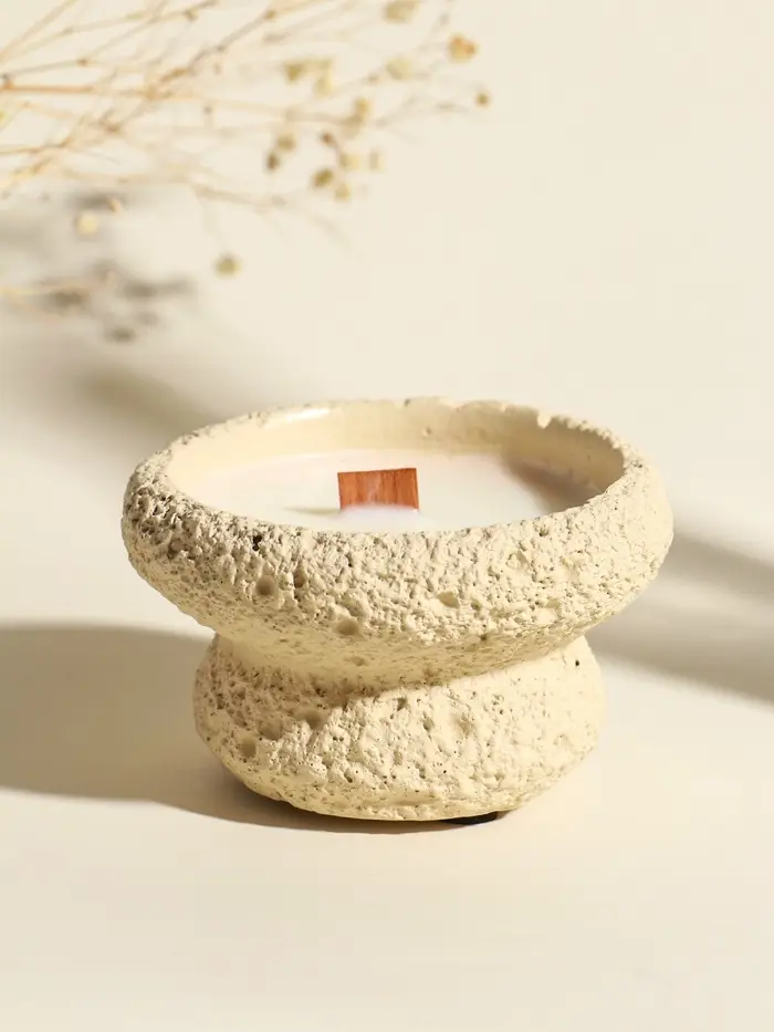 Свеча в вулканическом подсвечнике "Чаша" деревянный фитиль, белая 9,3х9,3х5,5 см