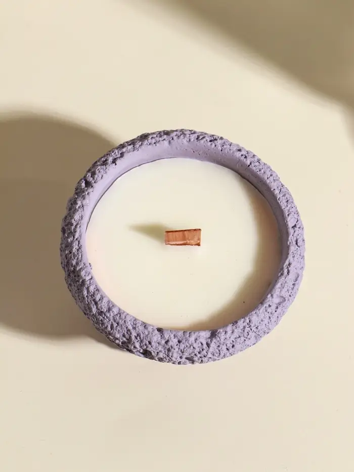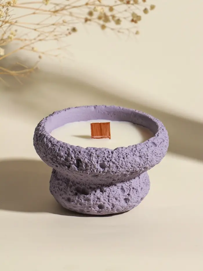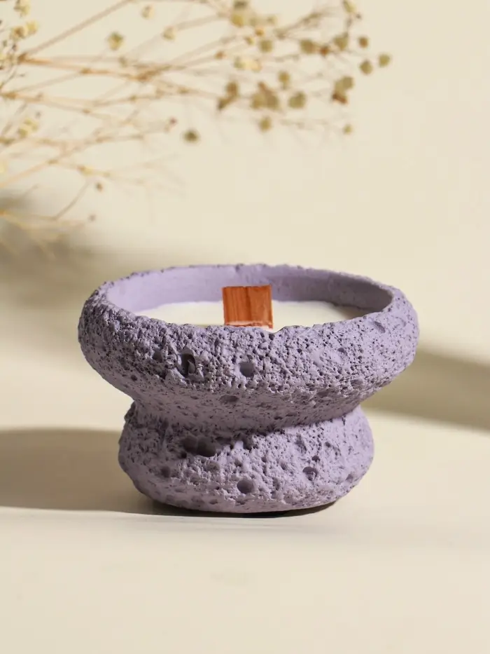 Свеча в вулканическом подсвечнике "Чаша" деревянный фитиль, сиреневая 9,3х9,3х5,5 см
