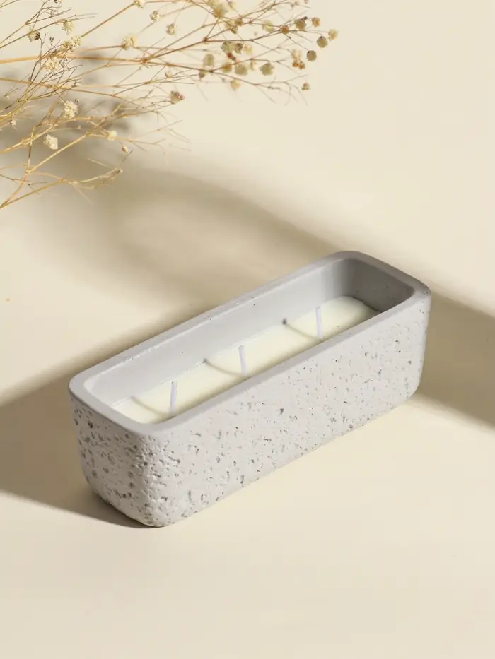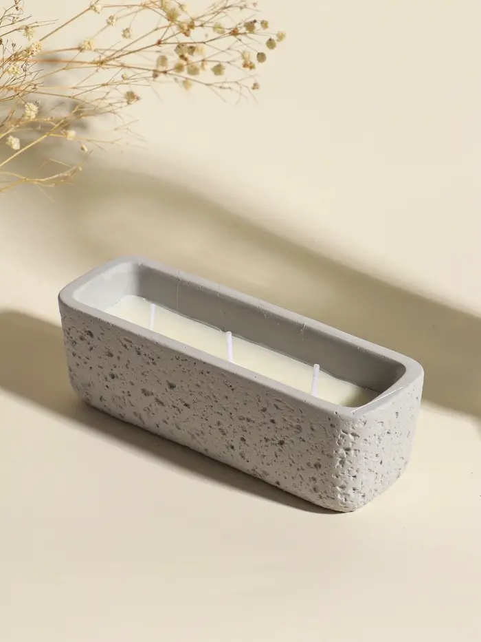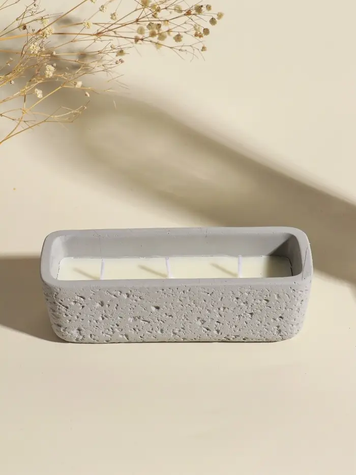 Свеча в вулканическом подсвечнике "Ящик" 3 хлопковых фитиля, серая 5,2х15х4,7 см