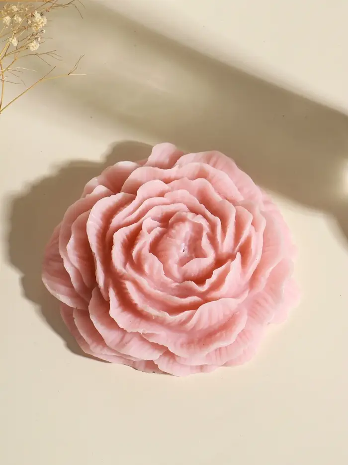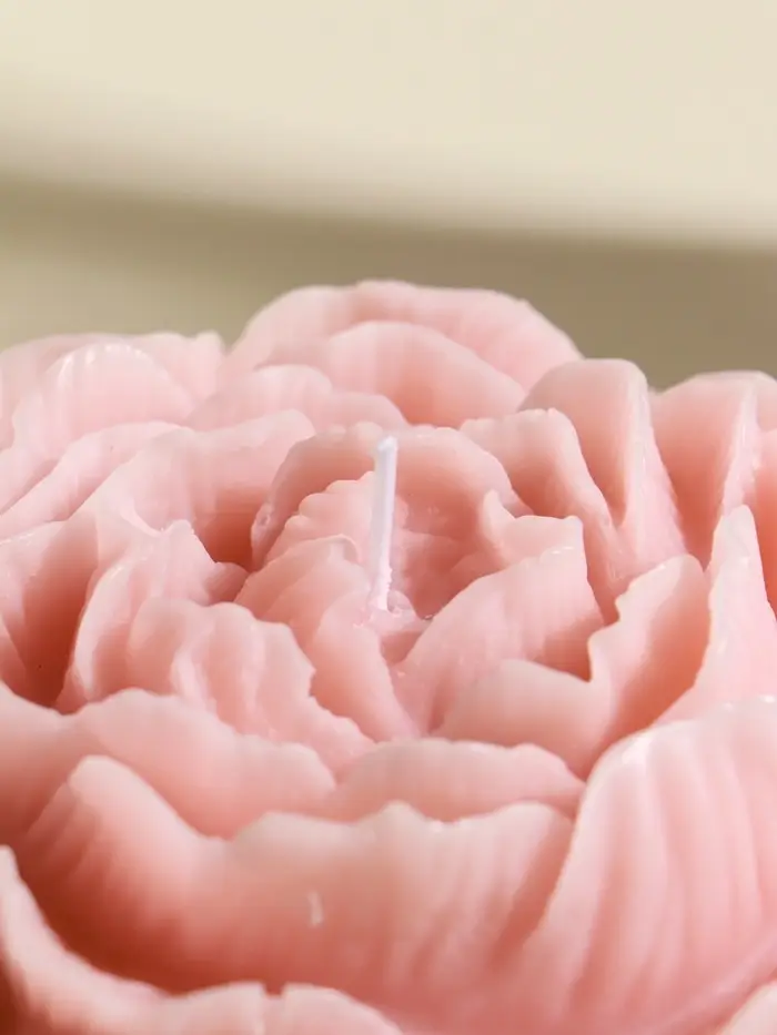 Эта декоративная свеча в форме пиона создаёт настроение уюта и спокойной эстетики. Мягкий оттенок пыльной розы и изящный рельеф лепестков превращают её в самостоятельный элемент декора, даже когда фитиль не горит.