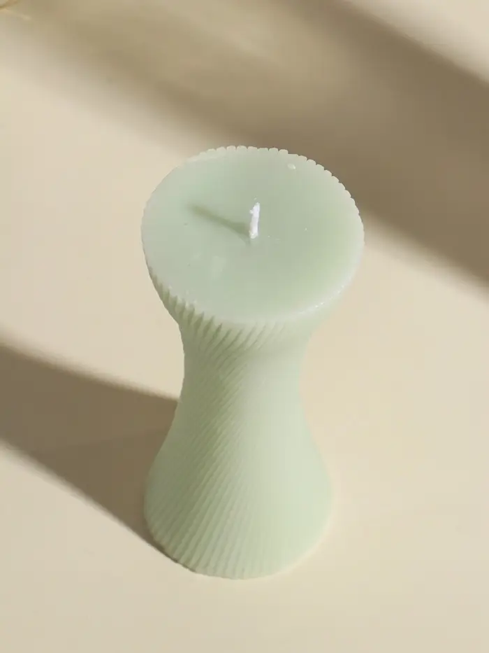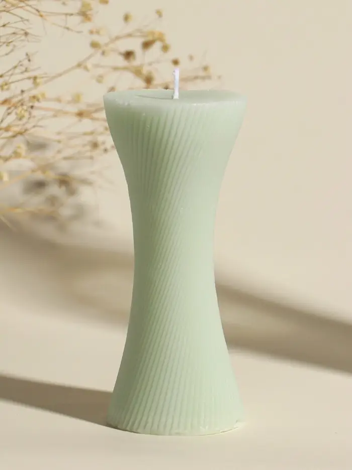 Эта декоративная свеча в нежно-зелёном цвете станет изящным акцентом для вашего интерьера. Её фигурный силуэт напоминает распускающийся бутон, привнося в обстановку ноту спокойствия и умиротворения.