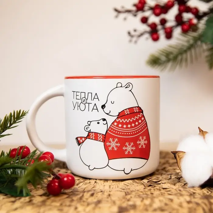 Кружка керамическая, новогодняя «Тепла и уюта», 380 мл