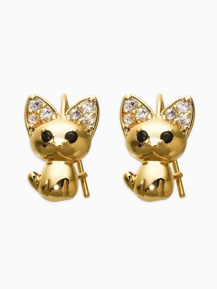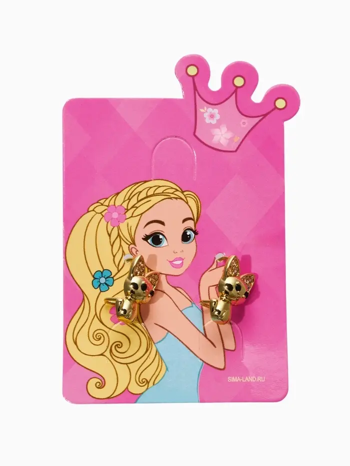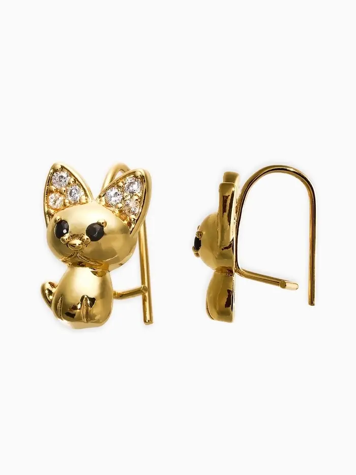 Серьги детские "Выбражулька" котик, цвет белый в золоте