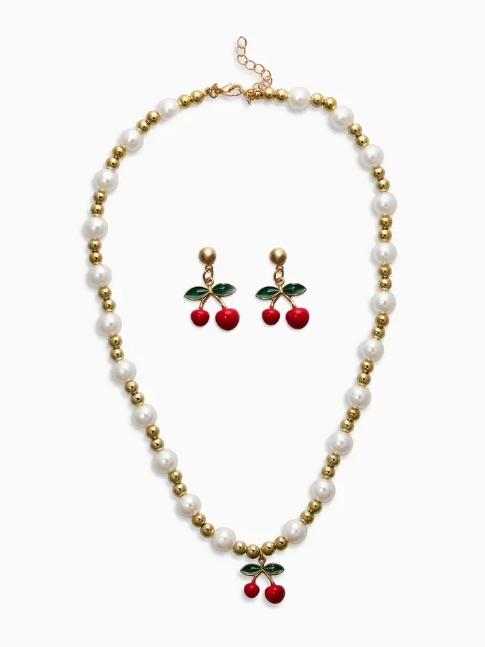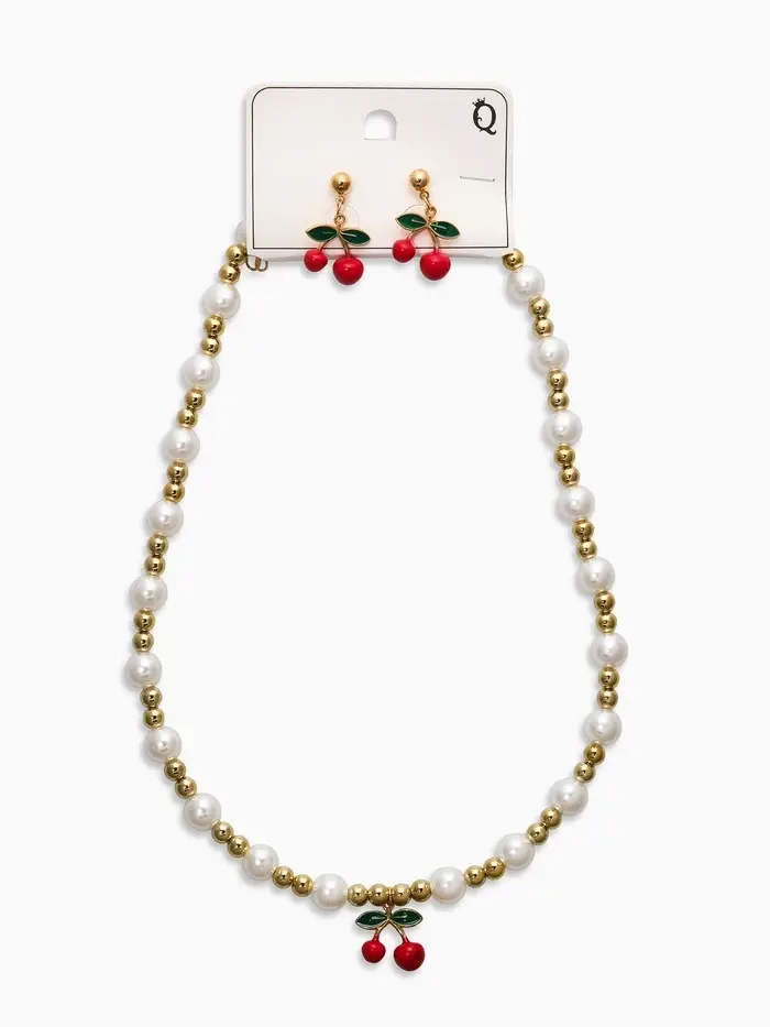 Набор 2 пред-а: серьги. кулон "Вишня" жемчуг, цветной в золоте